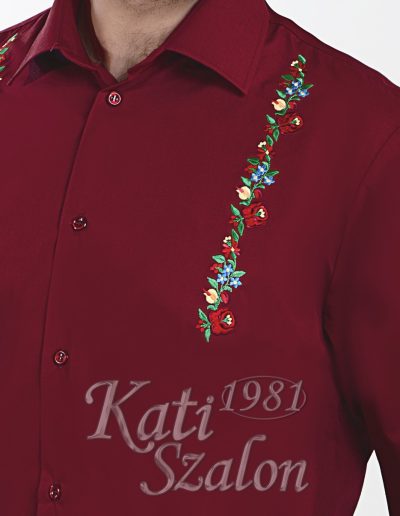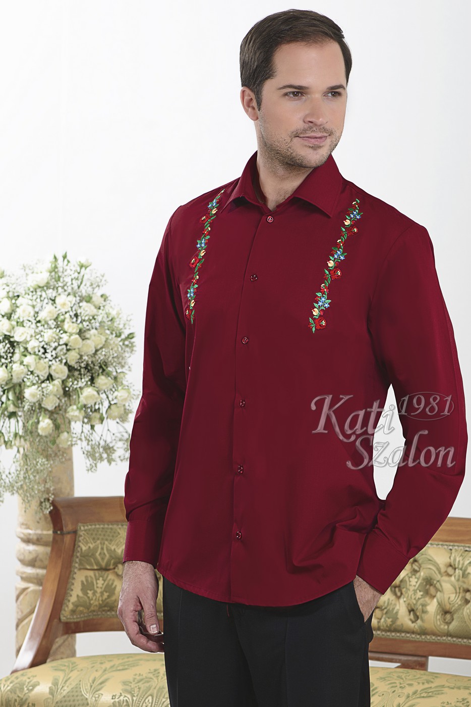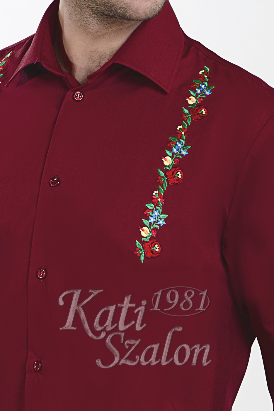 Bordó újember ing, válltól lefelé futó kalocsai mintával