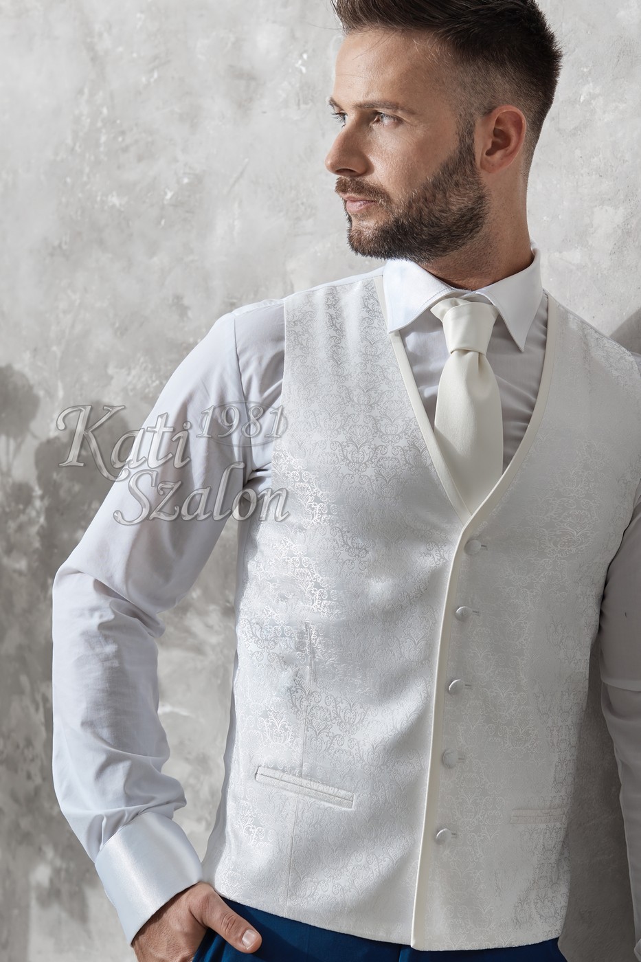 Hagyományos gallérja és mandzsettája szaténból készült. Elegáns alkalmakra különleges viselet.