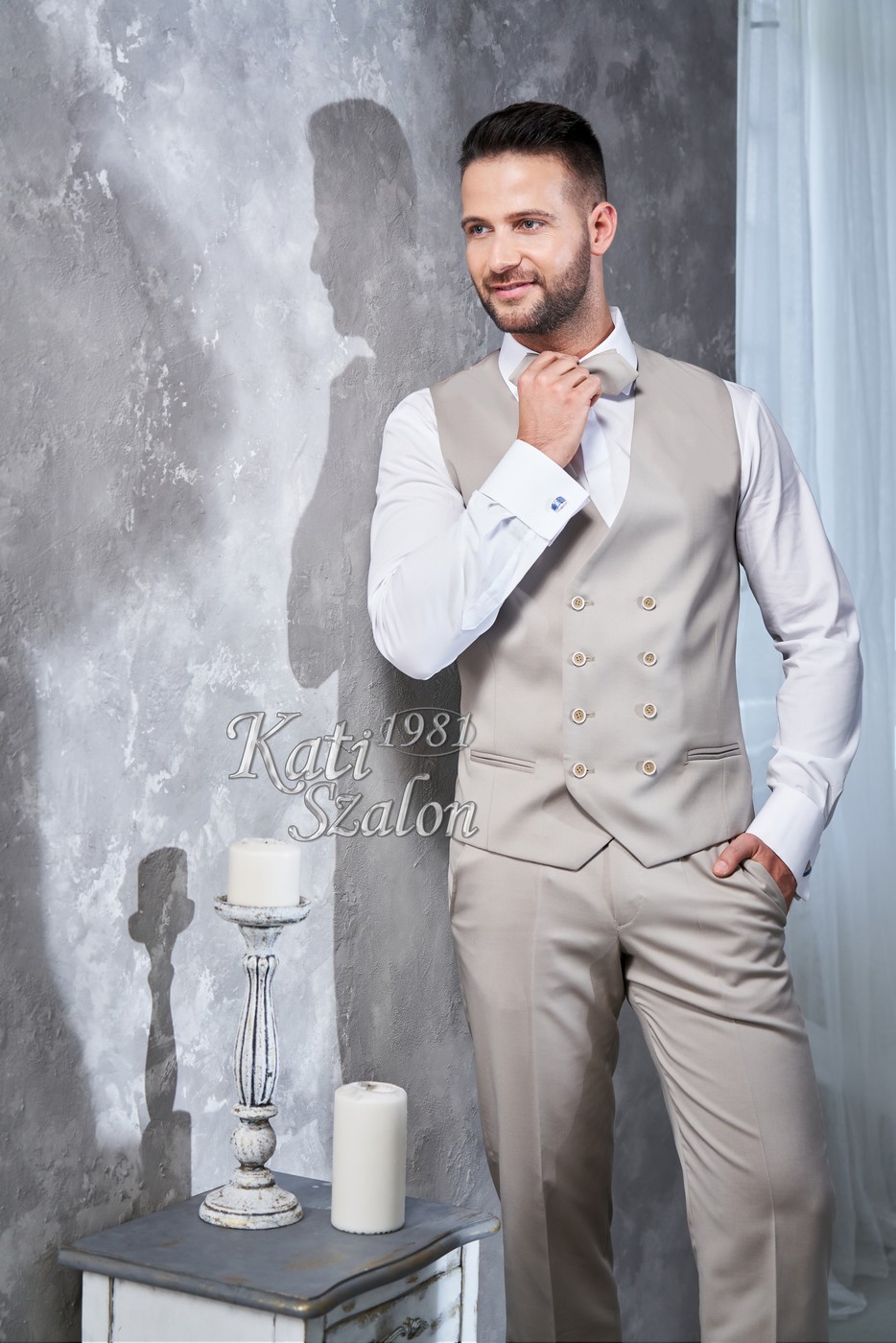 Homokszínű 2 soros gombolású ceremónia mellény csokornyakkendővel