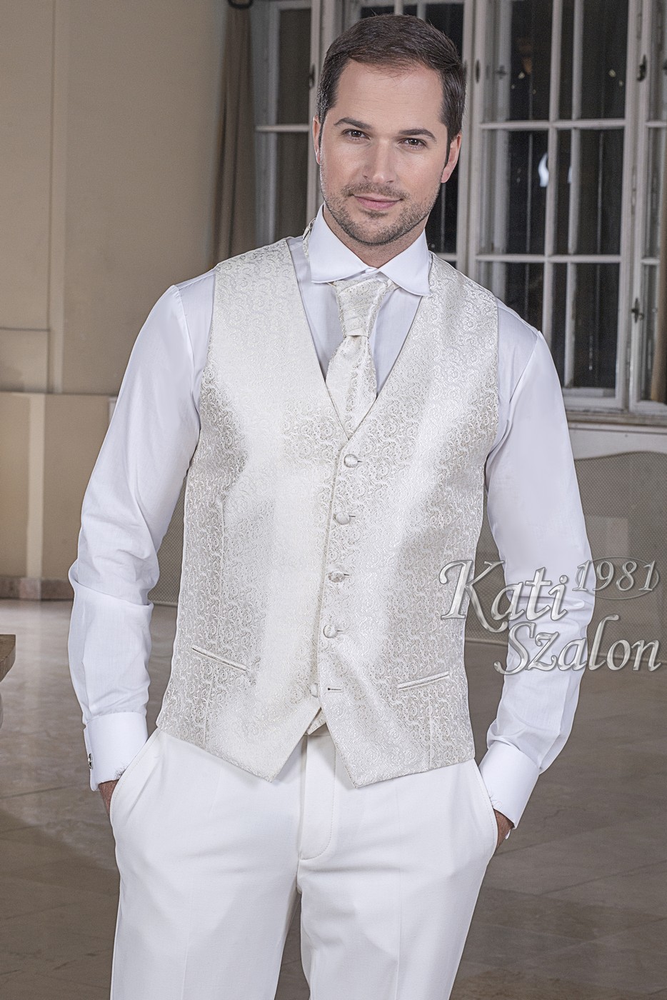 Ekrü mintás brokát mellény garnitúra.Fehér, bordó, sötétkék, fekete, barna színben is
