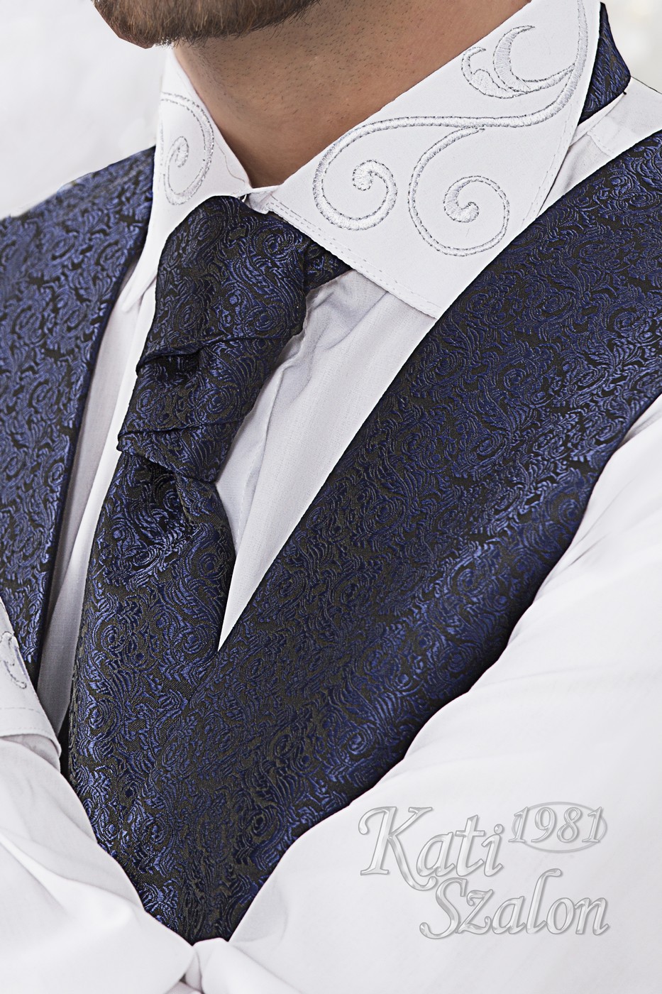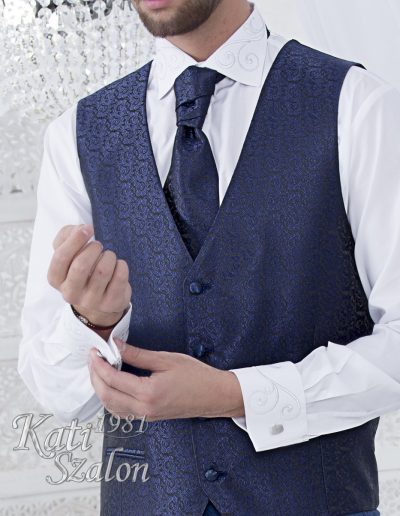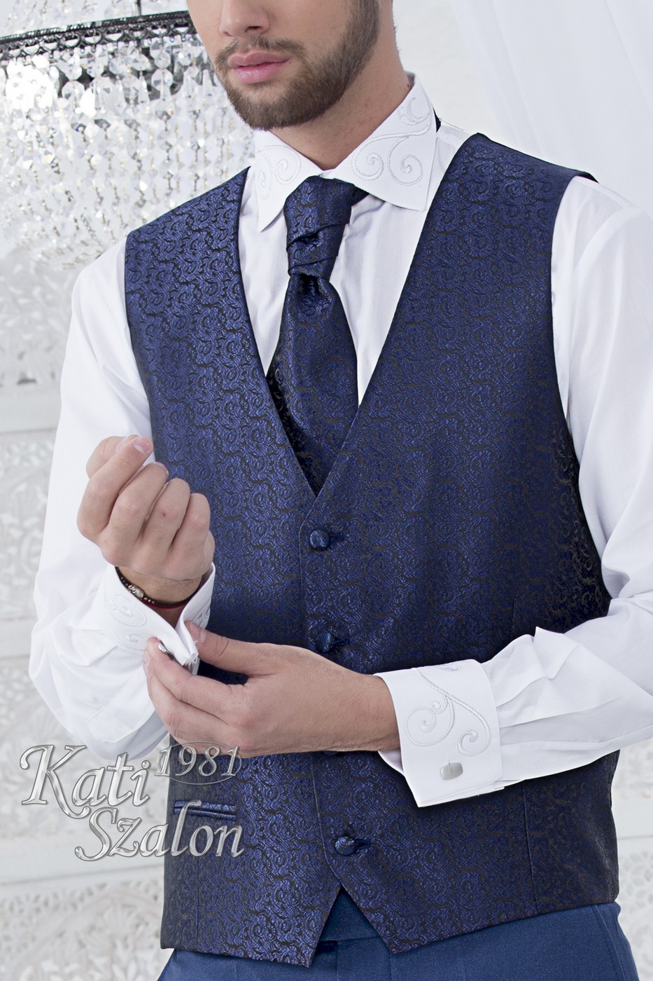 Sötétkék brokát önmagában mintás mellény garnitúra