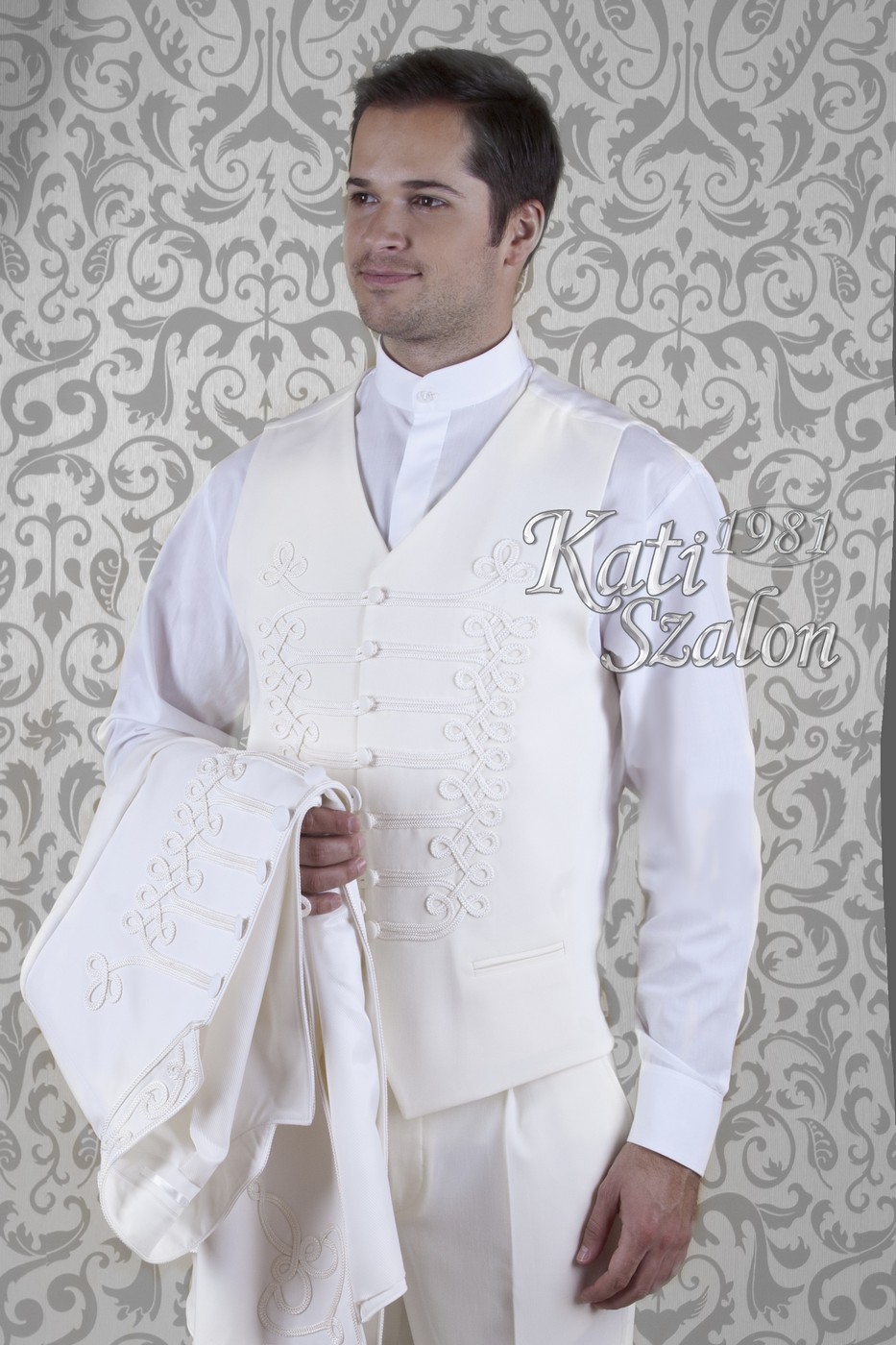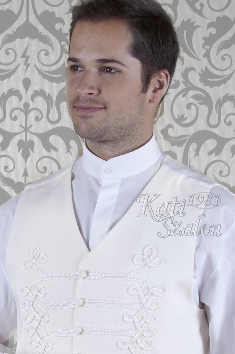 Ekrü szövet bocskai mellény, elegáns viselet.