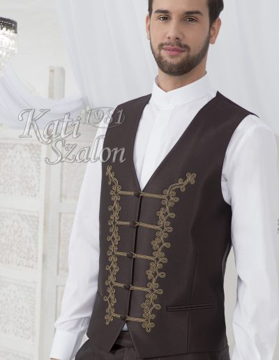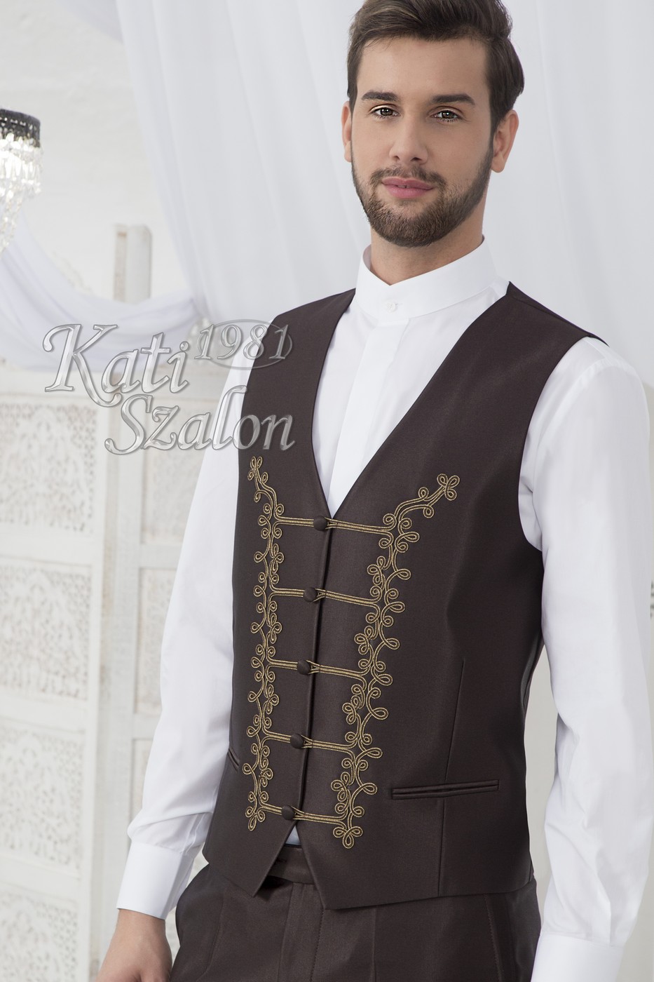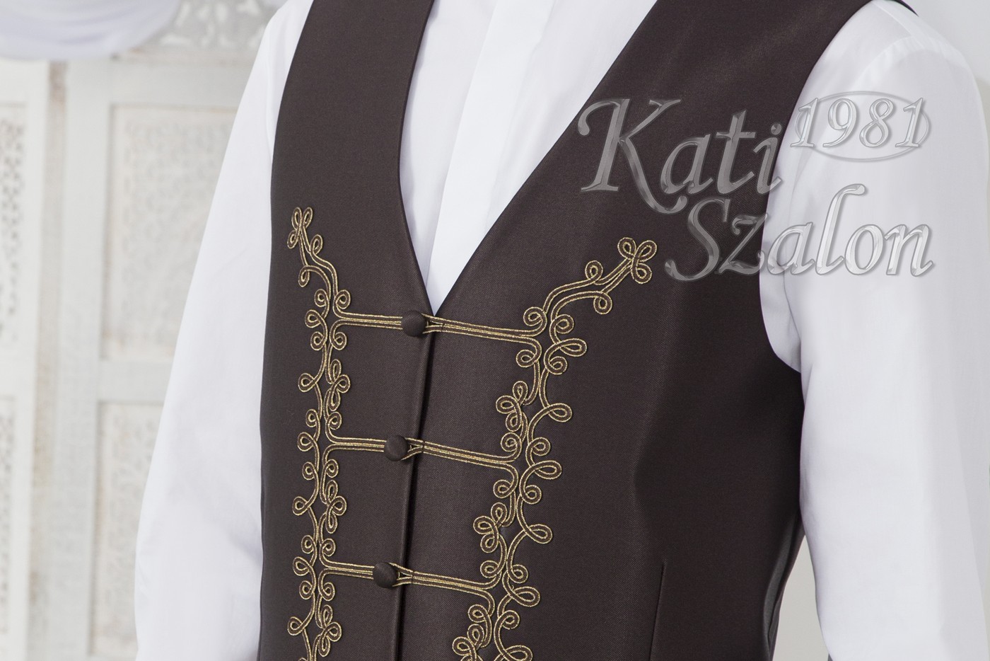 Sötétbarna bocskai mellény, óarany-barna kétszínű sujtással díszítve.