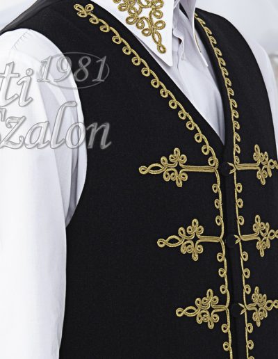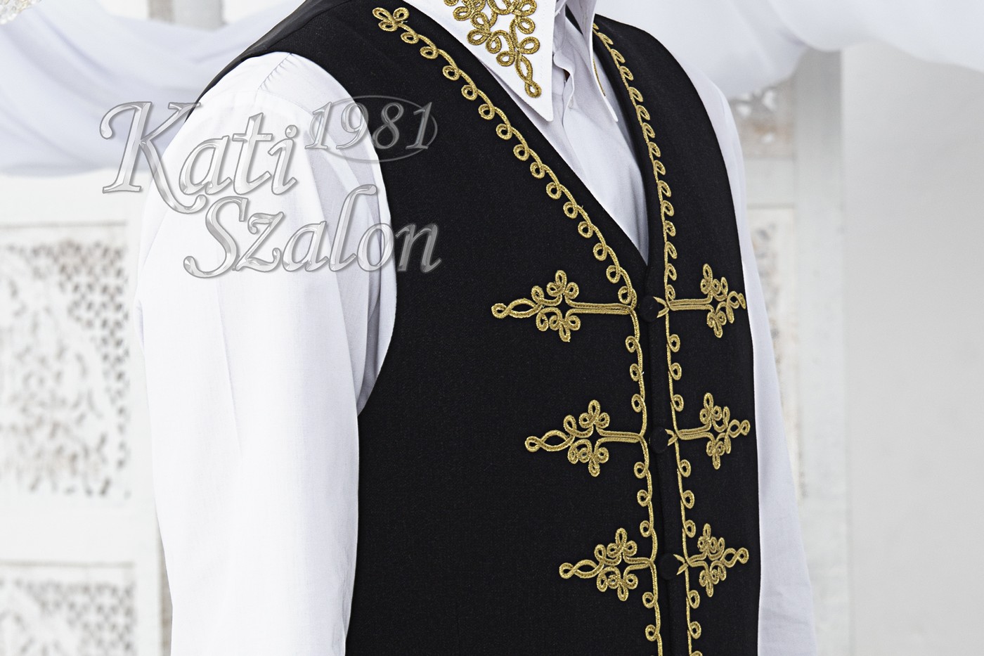 Keskenyedő zsinórozással díszített mellény. Az ing nyaka és mandzsettája a mellényhez illő sujtással díszített. Más színben is kérhető.