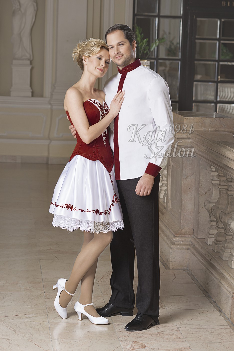 Bordó-fehér magyaros menyecske ruha és újember ing