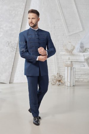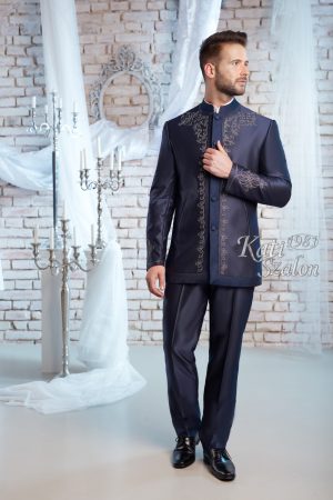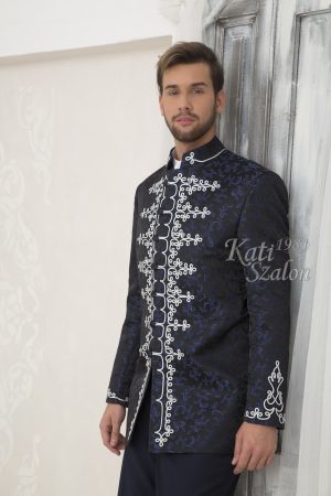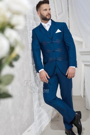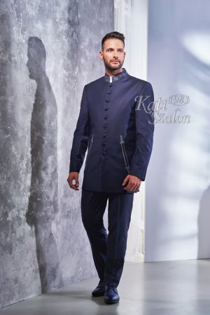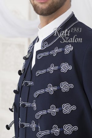 Sötétkék gyapjú vitézkötésű bocskai öltöny